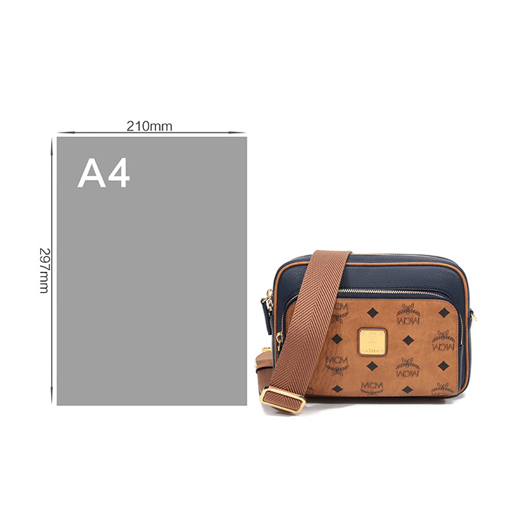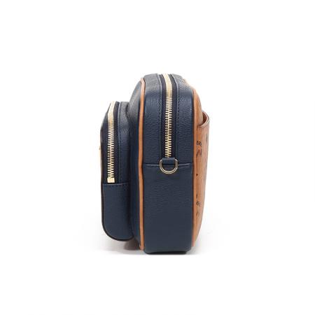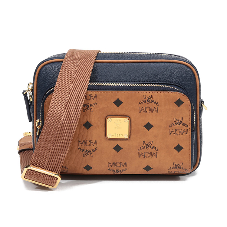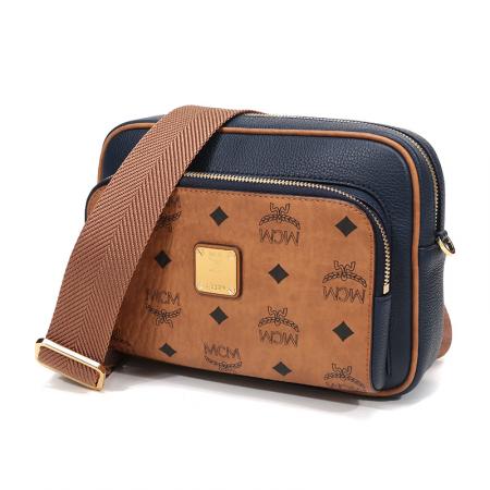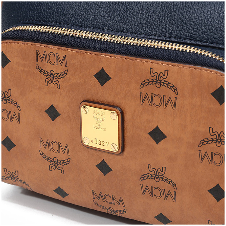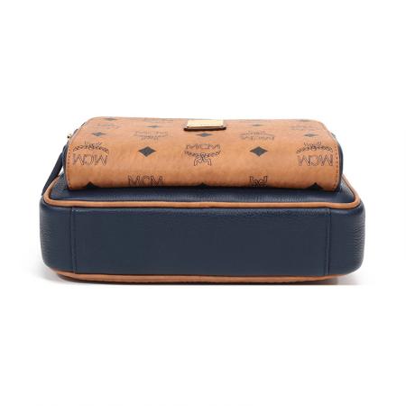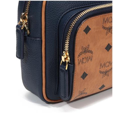 自营MCM 女士Klassik Visetos单肩斜挎包相机包暗蓝色干邑色LOGO小号 MMRAAKC11VU001