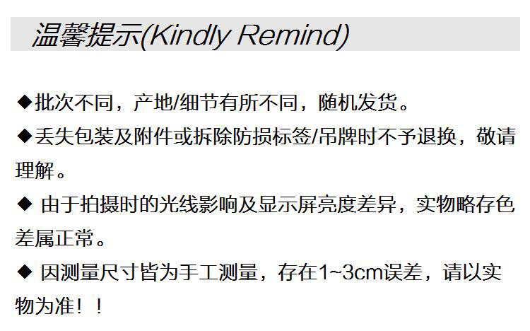 - 包装及附件:主商品×1商品卡×1说明书×1防尘袋×1肩带×1防损吊牌(防损贴)×1(一经摘除,无法退换货)