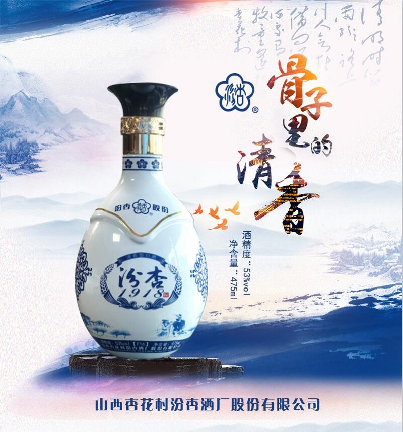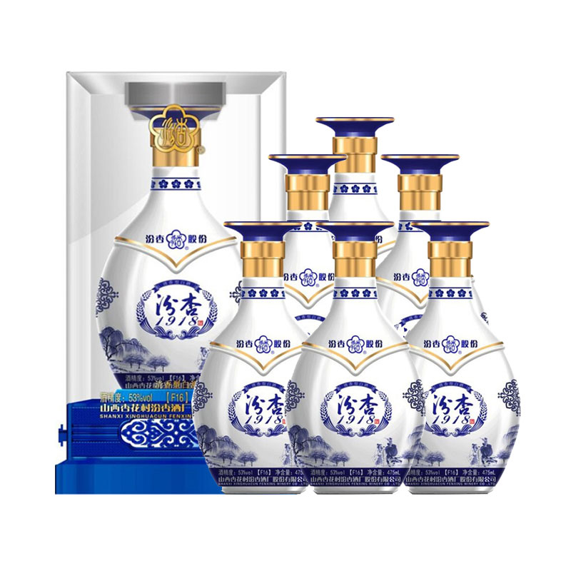 汾杏 【送礼袋】山西杏花村酒 汾杏1918 53度475ml*6整箱 F16 清香型白酒 商务送礼