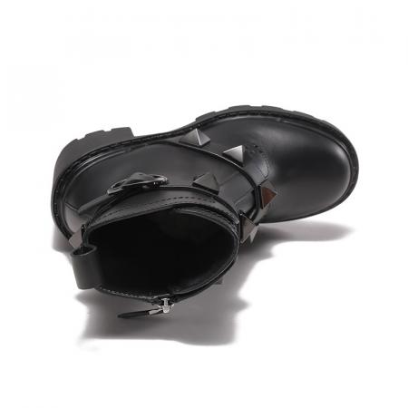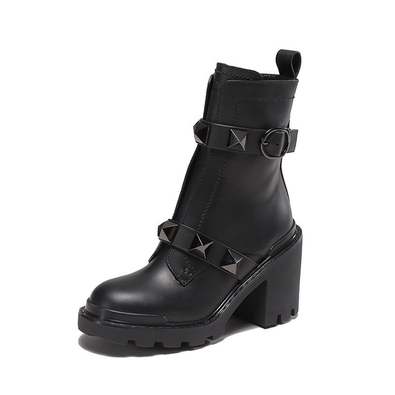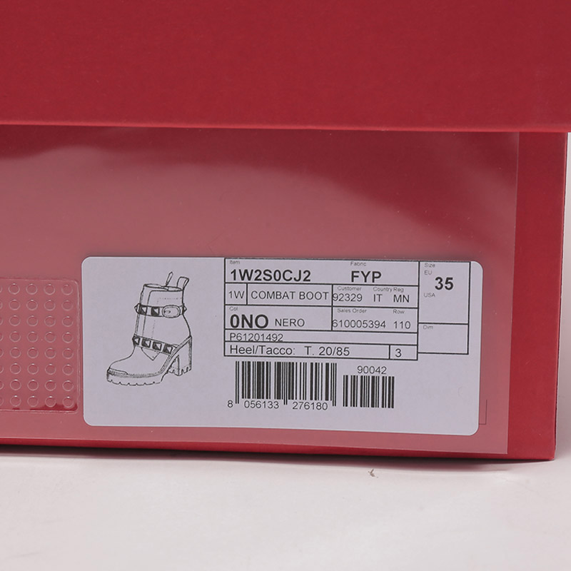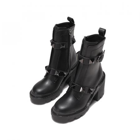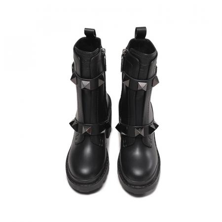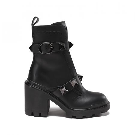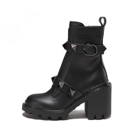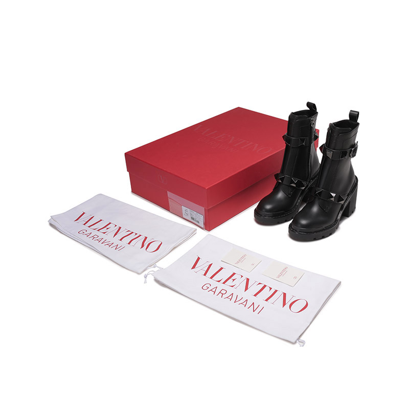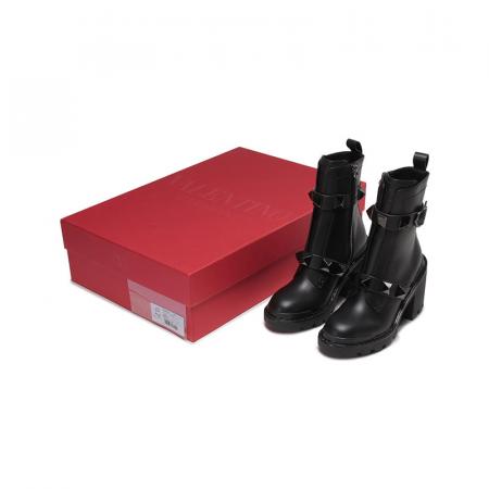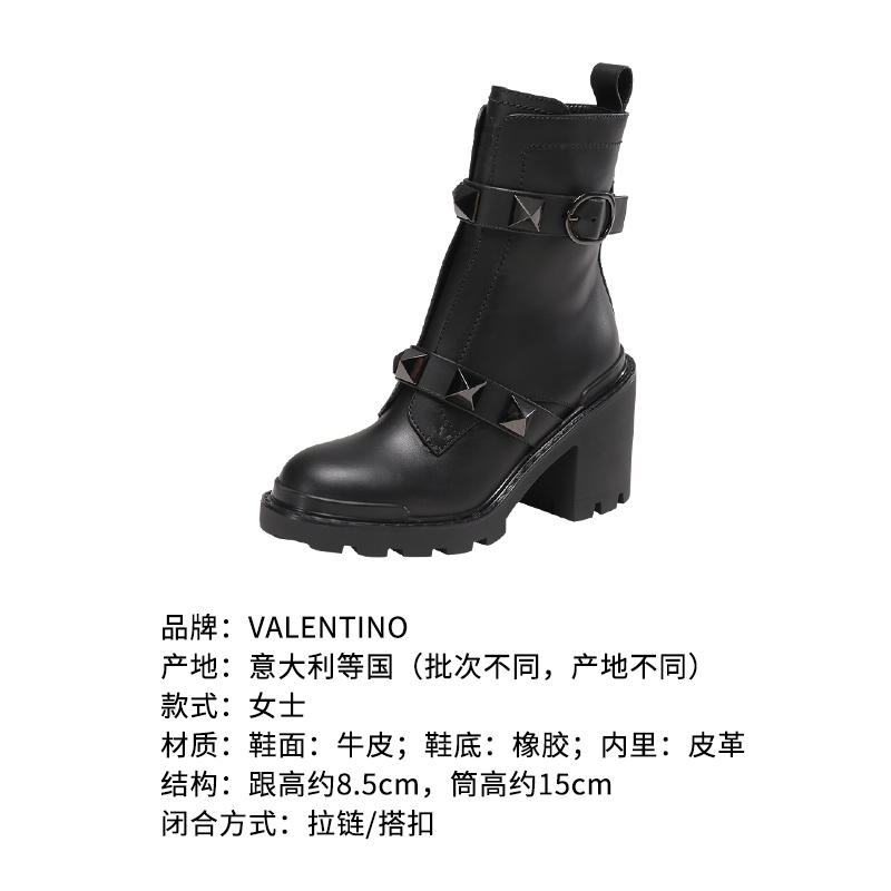 自营Valentino 华伦天奴 女士牛皮ROMAN STUD超大铆钉装饰粗高跟靴子短靴皮靴黑色 1W2S0CJ2 FYP 0NO 跟高8.5cm