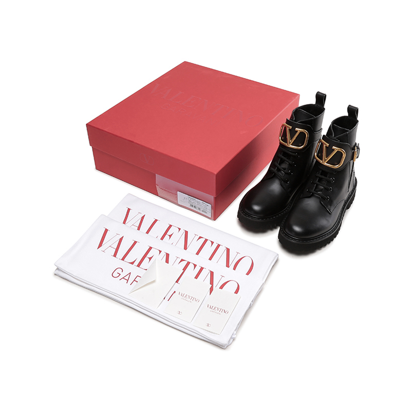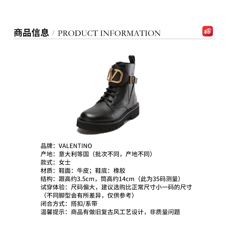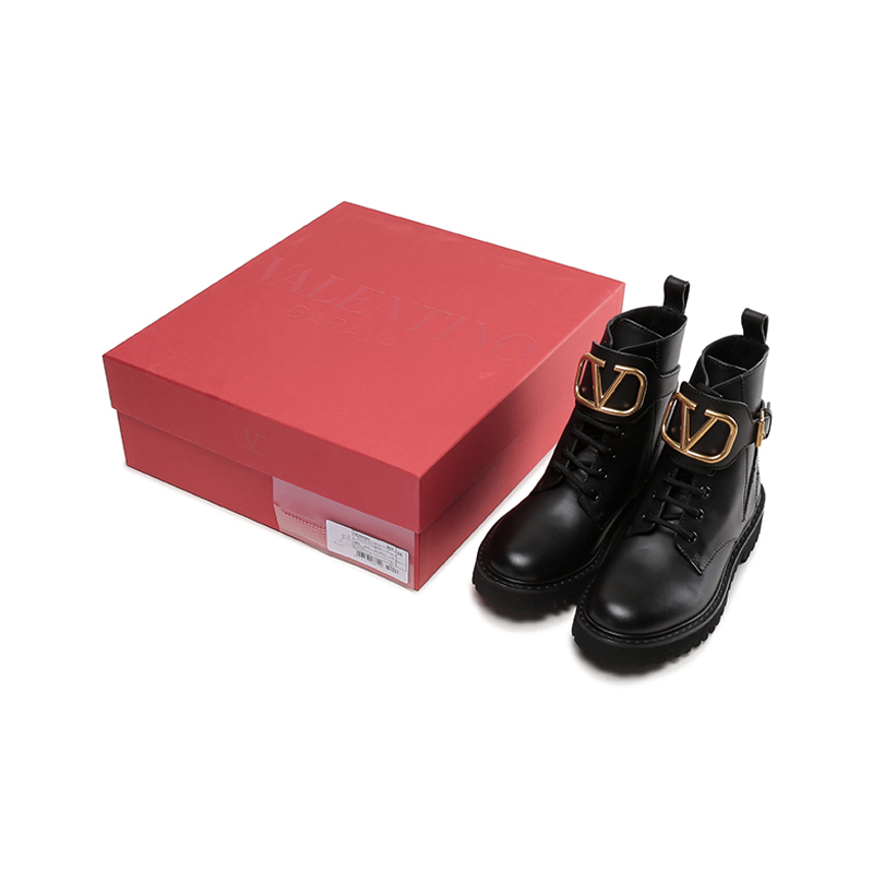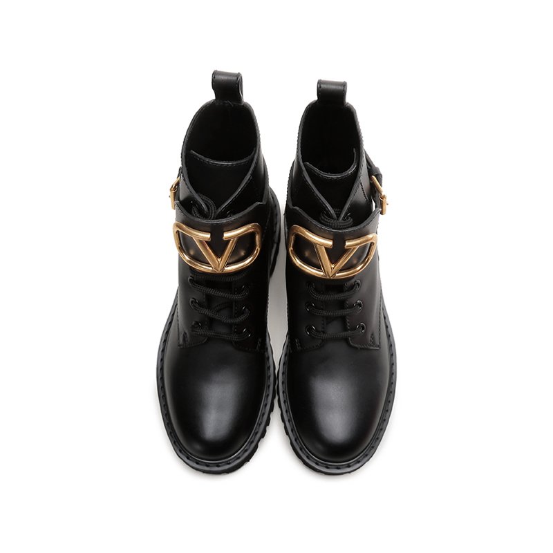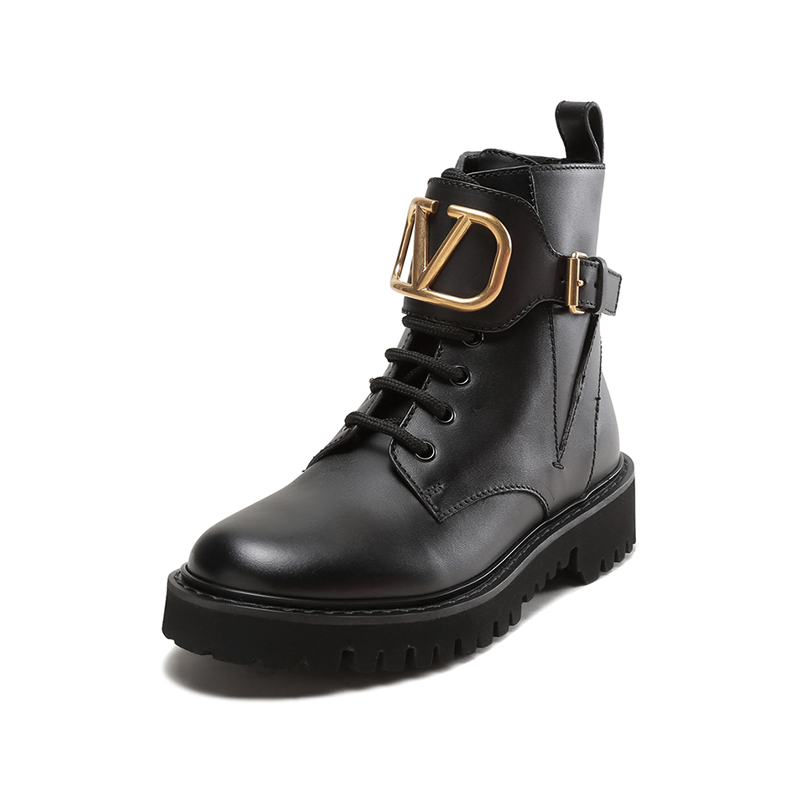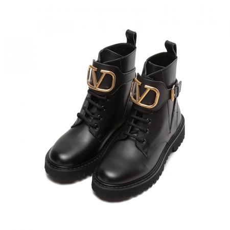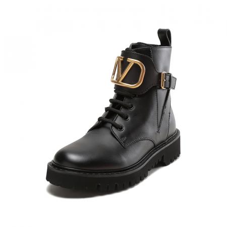 自营Valentino 华伦天奴女士牛皮VLOGO系带靴子军旅风短靴马丁靴黑色 1W2S0Q03 BEK 0NO