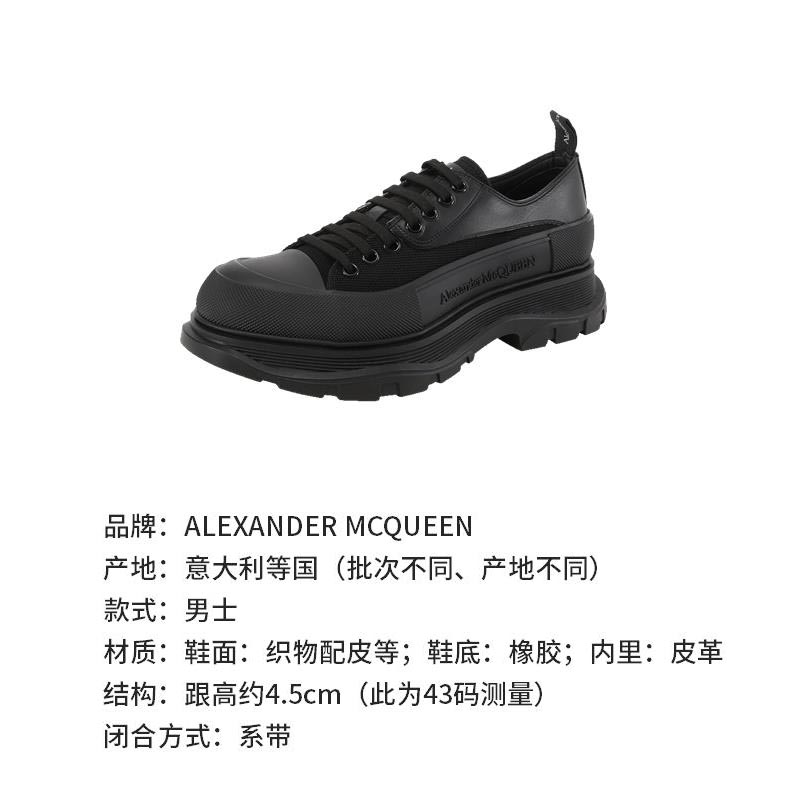 自营Alexander Mcqueen 亚历山大·麦昆 【24秋冬新品】男士黑色Tread Slick系带厚底休闲鞋 794524 WHZ6X 1320